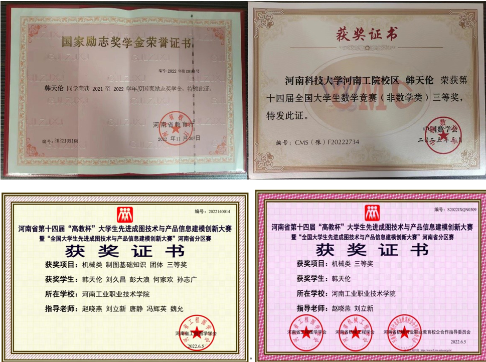 荣获国家奖学金、全国大学生数学竞赛等12项荣誉