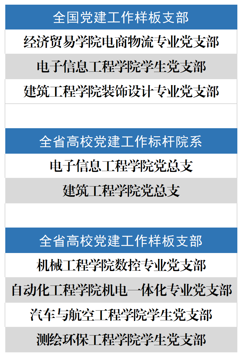 全国党建工作样板支部一、电子信息工程学院学生党支部电子信息工程学院学生党支部在学校党委的领导下,深入学习贯彻习近平新时代中国特色社会主义思想,坚持以党的建设为统领,充分发挥党支部战斗堡垒作用,2019年电子信息工程学院学生党支部获批全国党建工作样板支部。自获批全国党建工作样板支部以来,学院以点带面抓示范,辐射带动促提升,推动党建工作高质量发展,形成教育事业发展的强大合力,先后获批河南省国防科工系统“先进基层党组织”、河南省先进基层党组织、河南省党建工作标杆院系等。支部的学生党员在评奖评优、专升本、科技创新比赛等方面取得了骄人成绩,在2024年中国大学生世界创新大赛中获得金奖、2024年世界职业院校技能大赛“大数据应用开发”争夺赛获金奖、2024世界职业院校技能大赛“软件系统开发”争夺赛获金奖、2022年全国职业院校技能大赛“物联网技术应用”赛项获一等奖等殊荣。二、经济贸易学院电商物流专业党支部经济贸易学院电商物流专业党支部成立于2018年,2022年被认定为全国党建工作样板党支部。在学校党委、学院党总支的领导下,电商物流专业党支部深入学习贯彻习近平总书记关于党的建设、职业教育的重要论述