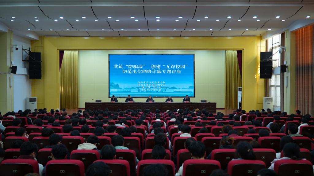 为进一步做好校园防范电信网络诈骗宣传教育工作,建立健全校园反诈宣传教育长效机制,切实提升师生防骗意识和识骗能力,3月11日下午,我校邀请南阳市公安局宛城分局反诈中心民警走进校园,为师生开展了一场主题为