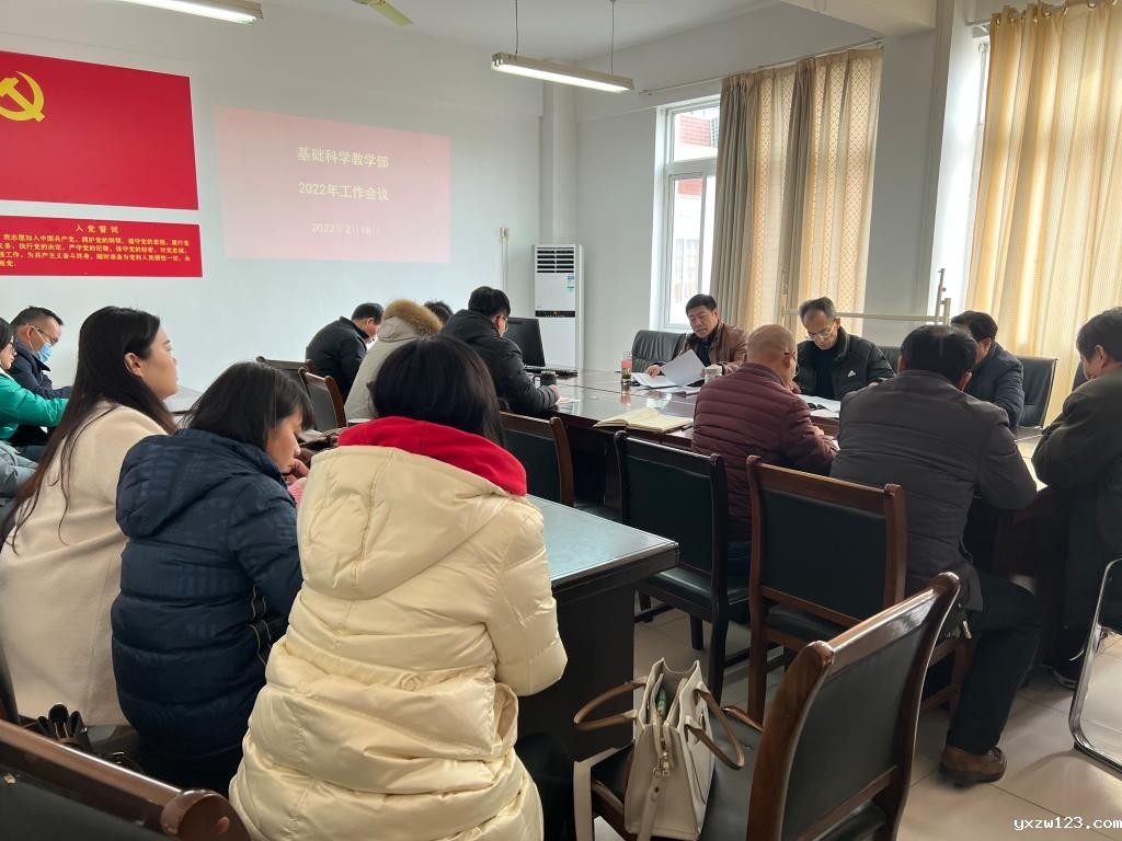 2月20日下午,基础科学教学部在行政楼1421会议室召开2022年度工作会议,全体教职工参加,基础部主任王劲松作工作安排部署。