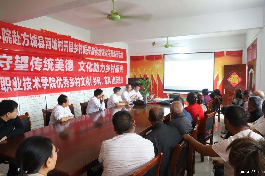 2022年9月20日上午,基础科学教学部主任王劲松、书记冯硕带领部分骨干教师一行10余人赴方城县杨集镇河坡村开展主题为“弘扬守望传统美德,文化助力乡村振兴”优秀传统家庭美德文化教育宣讲活动。
