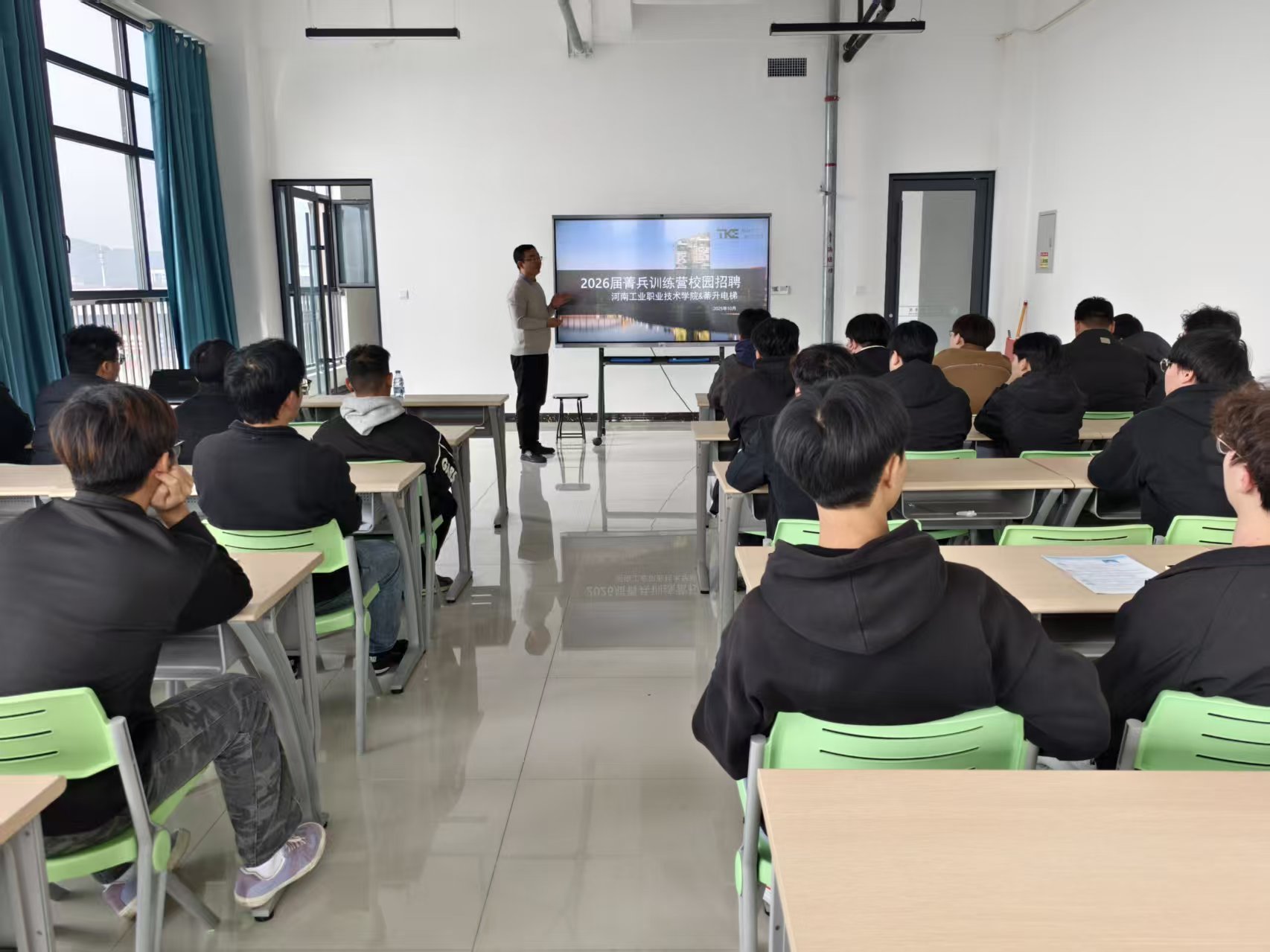 蒂升电梯(中国)有限公司郑州分公司人事经理韩义光以“蒂升电梯成长路与科技梦”为主题,回顾了企业百年匠心传承,重点展示了公司全球化布局,中国47家分公司、3大制造基地及超万名员工的雄厚实力,公司四度荣获“大学生喜爱的雇主品牌”。他详细解读了“菁兵训练营”培养计划,该项目旨在为电梯技术、机械、自动化等专业学生提供“实习+就业”一站式通道。通过导师制、在岗实践及全国技能大赛等多元化培养模式,助力学生快速成长为技术骨干。注重吃苦耐劳、学习能力与团队协作等素质。现场学生踊跃投递简历,郑州分公司、洛阳分公司人事经理分别进行了笔试和面试。