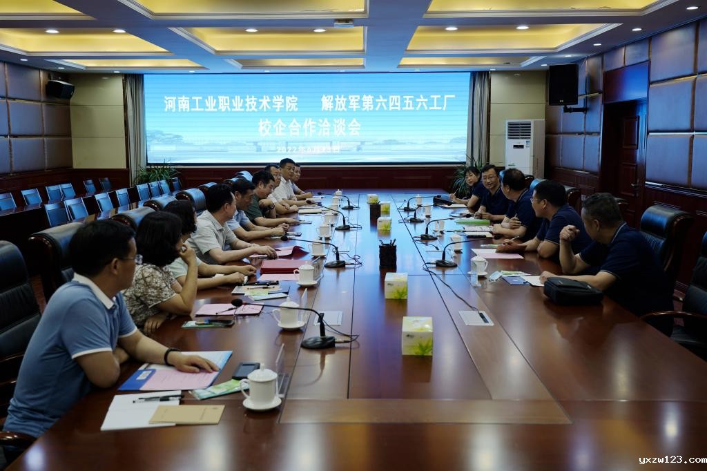6月13日下午,中国人民解放军第六四五六工厂厂长韩红兵、副厂长李小磊、人力资源与培训部部长胡兵、研发中心主任郝炳谦、企业发展内控部部长方茜一行到我校洽谈校企合作。学校校长王伟、副校长王仁伟、工会主席屈保中出席交流会,教务处、招生就业处、产教融合发展中心、继续教育学院、机械工程学院、汽车与航空工程学院等单位负责人参加交流会。