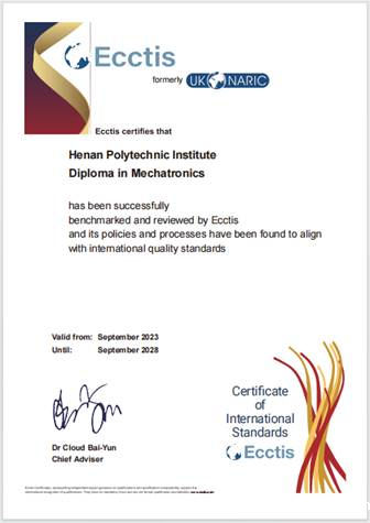近日,学校机电一体化技术专业团队历经申报、编制、初审、复审、终审等环节,历时2年,该专业正式通过UK ENIC国际专业标准评估认证,取得UK ENIC国际可比性证书和国际质量标准证书,专业达到了英国资历框架(RQF)和欧洲资历框架(EQF)5级水平。