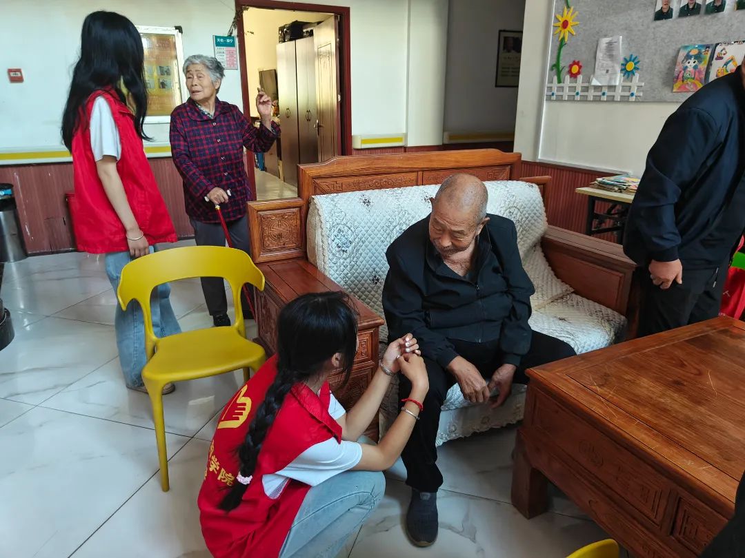 9月22日上午,志愿者们来到康宁养老院开展助老爱心慰问活动。活动现场,志愿者们为老人们表演自编自导的文艺节目,不仅为老人们的生活增添一抹亮丽的色彩,更重要的是,能够让他们感受到来自年轻一代的蓬勃朝气,以及整个社会对他们的深切关怀与温暖。志愿者们还陪伴老人们进行康复训练,精彩的表现赢得了老人们的连声称赞,志愿者同学与老人促膝长谈,一句问候、两句轻语,活动现场洋溢着浓浓的情意。互动交流活动结束后,志愿者同学们对养老院的卫生进行了大扫除,为老人们提供一个舒适的生活环境。