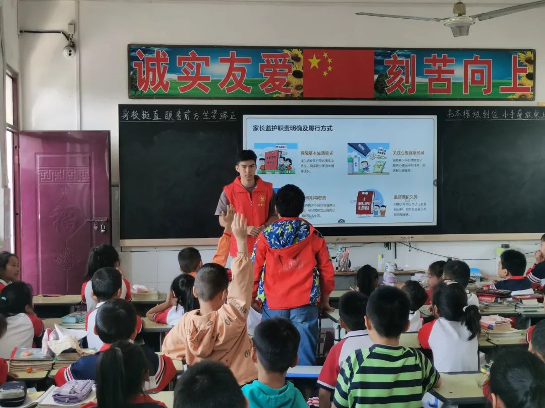 在白塔村小学,志愿者王精栋同学面向小朋友们开展了12355青春自护教育和法治宣传教育宣讲。王精栋同学针对防止拐骗教育、防止暴力伤害教育、防止吸食毒品教育、防止电信诈骗教育等方面进行讲解。首先从拐骗的常见手法、如何防范拐骗的策略和实际案例的讲解,让小朋友们能够真实的学习到遇到拐骗的时候如何进行自救。再从如何加强防侵犯教育、如何预防校园暴力等方面教授孩子们如何预防不法侵害。
