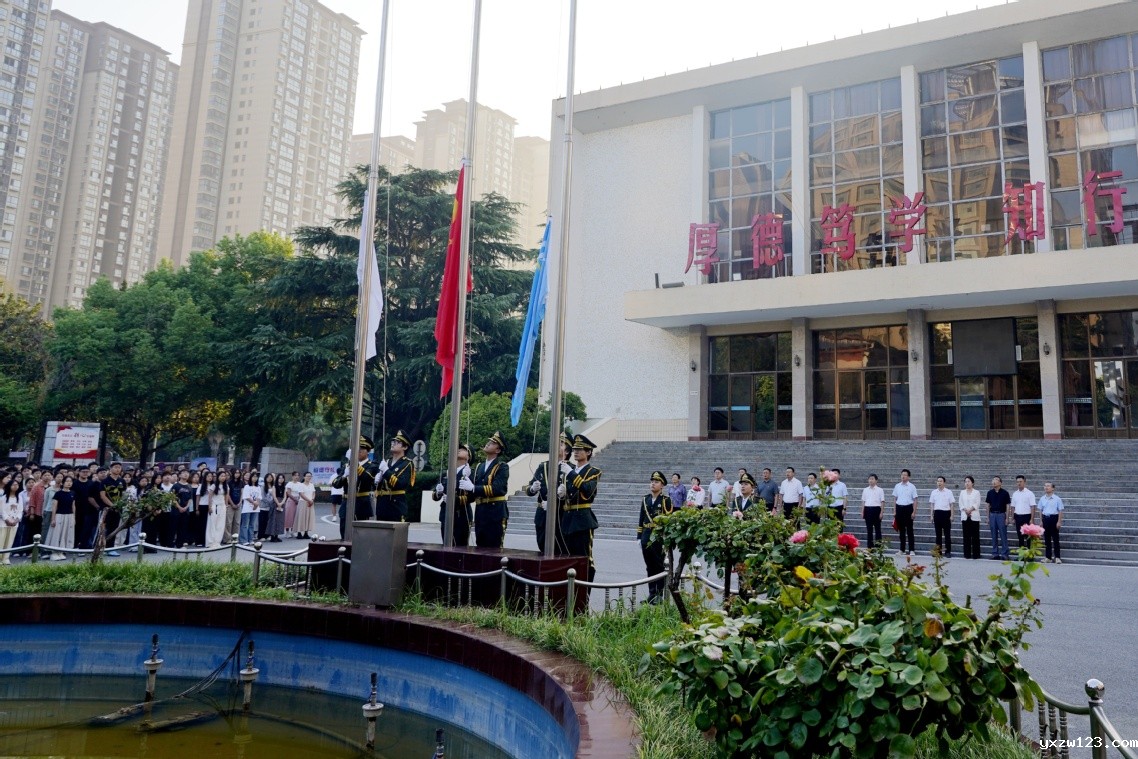 校长屈保中、党委副书记马小兵分别在孔明校区和光武校区代表学校在国旗下发表讲话。